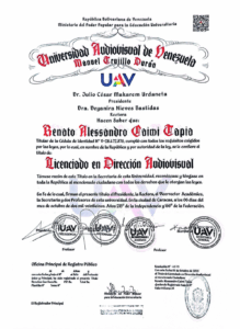 CAIMI TAPIA, RENATO ALESSANDRO, Cédula de Identidad No: 28.472.876, AÑO 2025