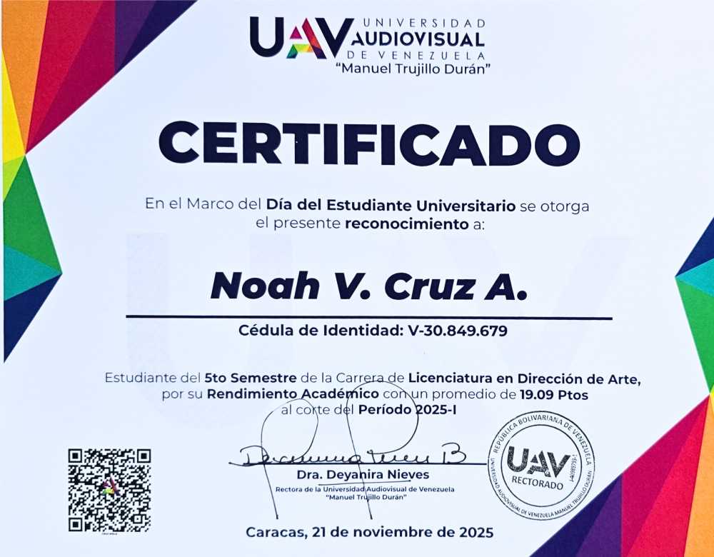 CRUZ AYALA NOAH VALENTINA, C.I.: 30849679, carrera: LICENCIATURA EN DIRECCIÓN DE ARTE