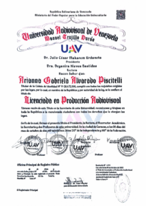 VALARINO PIÑANGO VERONICA ALEJANDRA, C.I.: 31707145, carrera: LICENCIATURA EN PRODUCCIÓN AUDIOVISUAL