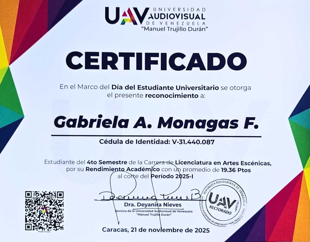 Monagas Fernández Gabriela Alexandra, C.I.: 31440087, carrera: LICENCIATURA EN ARTES ESCÉNICAS