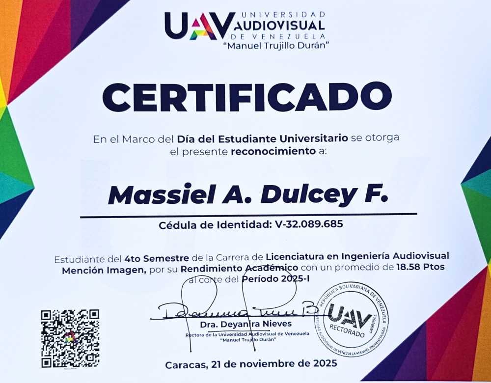 Dulcey Ferrer Massiel Ayleen, C.I.: 32089685, carrera: INGENIERÍA AUDIOVISUAL MENCIÓN IMAGEN
